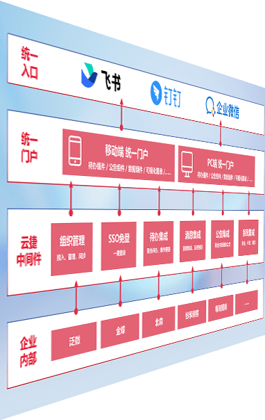 对协作平台提供支持服务,,,,支持企业应用与协作平台对接,,,,包含组织同步、、、消息集成、、待办集成等。。。。支持目前主流的协作平台:钉钉、、、、企微和飞书。。。。